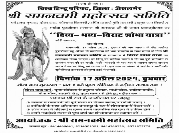All Sanatani are invited wih their families by... "Ramnami Janmotsav Samiti".. organised by Vishwa Hindu Parisad, Jaisalmer.