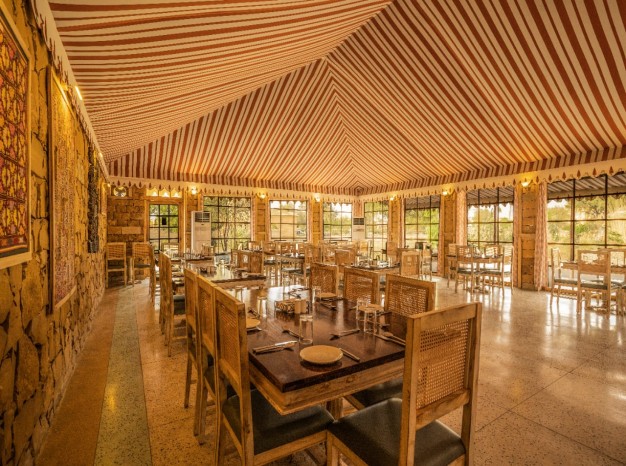 From authentic Dal Baati Churma, Laal Maas, Ker Sangri, to international delicacies, every dish is crafted with care to give you a memorable culinary journey. The elegant interiors, candle-lit dinners, and fort-side seating make it one of the most romantic and iconic dining spots in Jaisalmer.